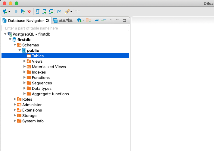 firstdb 데이터베이스에 정상적으로 접속되었습니다.