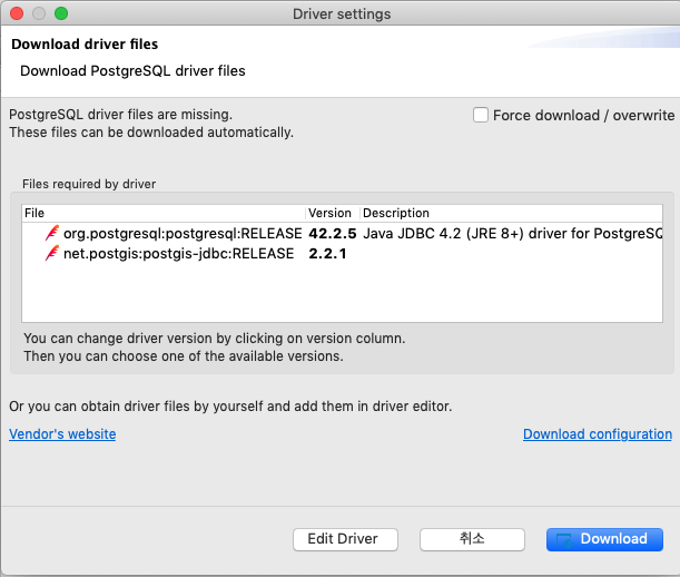 처음 접속하면 jdbc 설치화면이 표시됩니다.