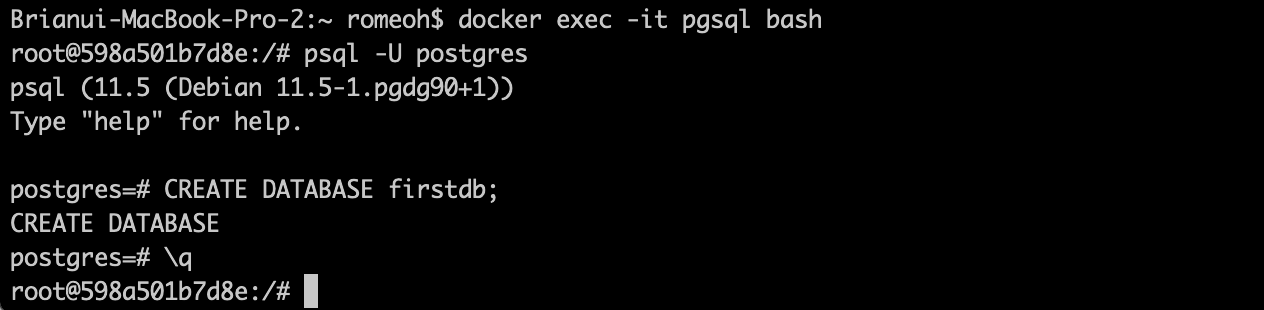 $ docker exec -it pgsql bash