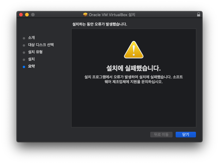 [VirtualBox] 설치에 실패했습니다. - MacOSX 본문