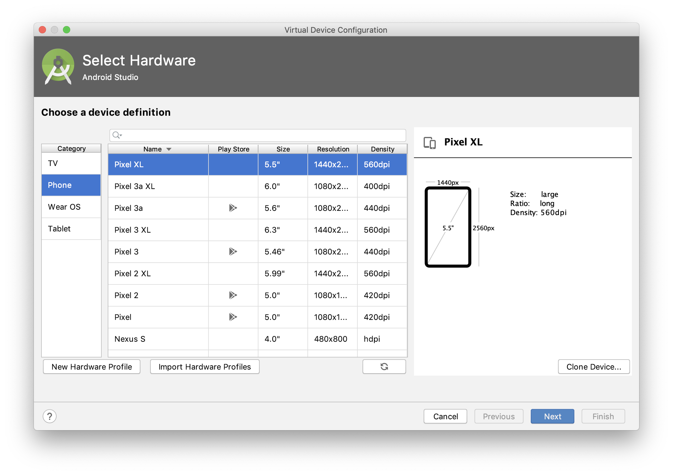 Create Virtual Device를 선택합니다.
