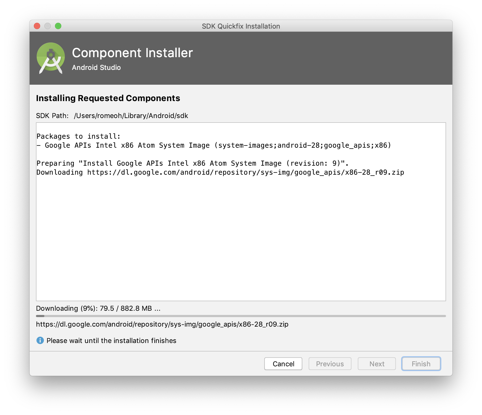 Finish를 눌러서 Components를 다운로드 합니다.