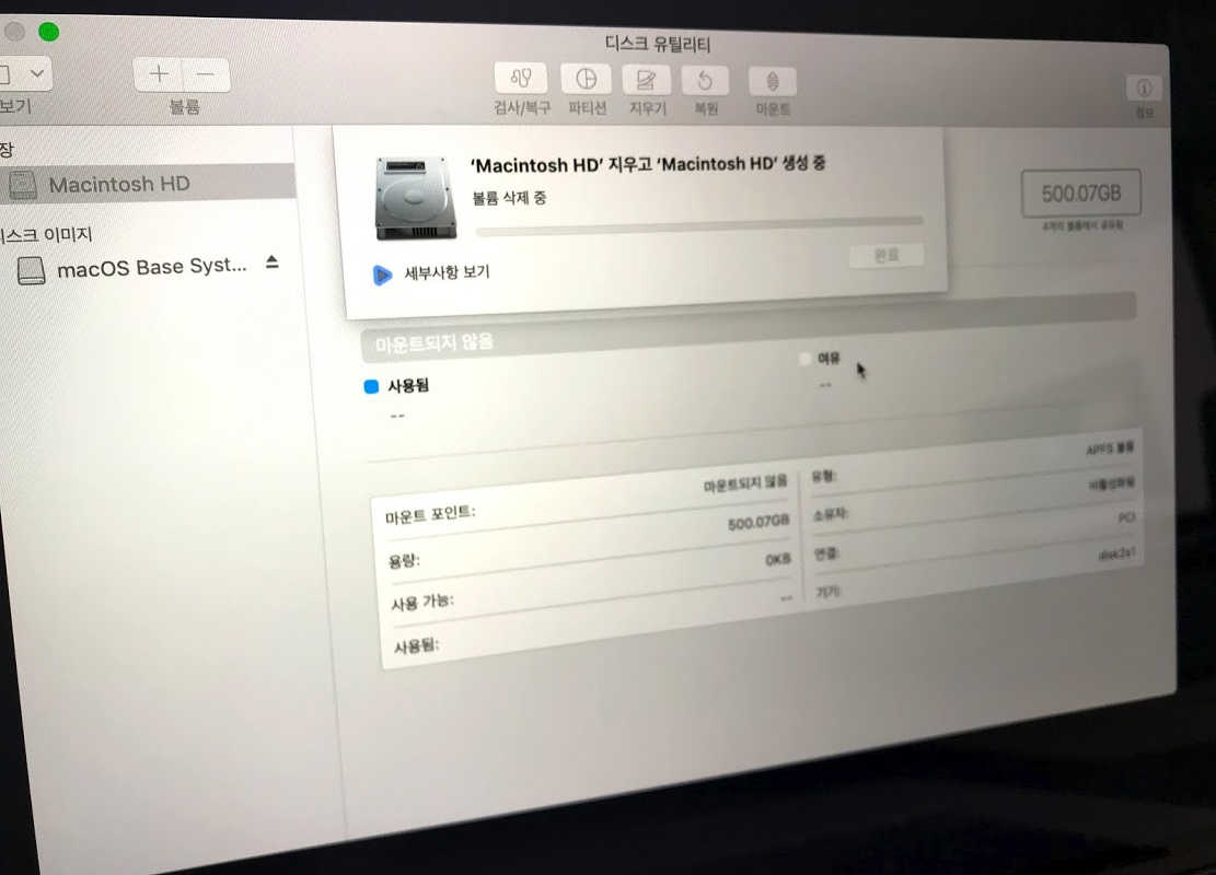 macOS 다시 설치합니다.