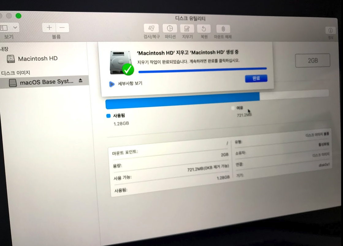 하드디스크를 선택하고 지우기를 누릅니다.