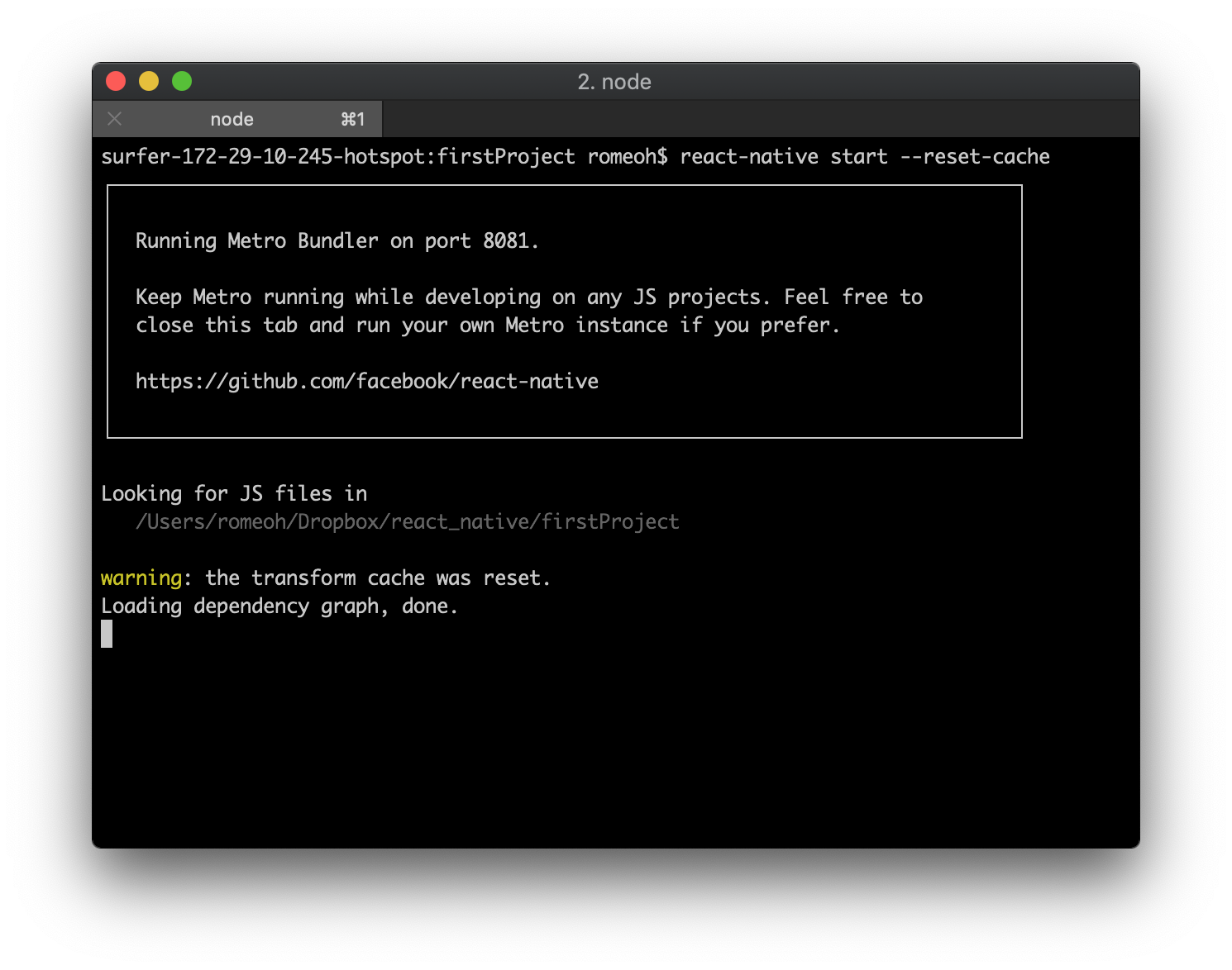 $ react-native start --reset-cache