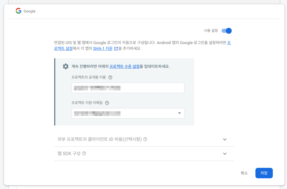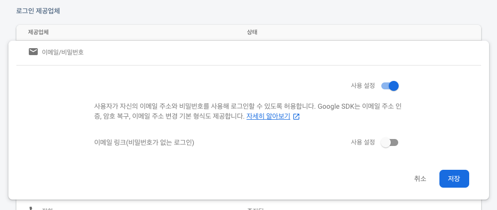 Google 도 사용설정 하고 저장합니다.