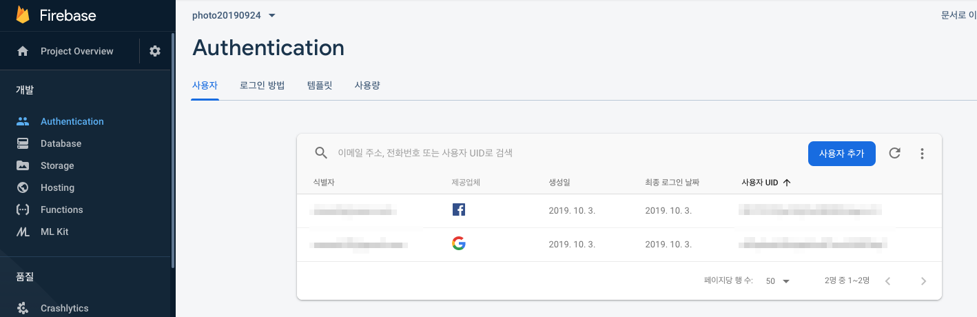 [Firebase] Authentication 로그인 - Google, Facebook, Email 본문