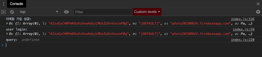 크롬 Console에서 회원가입시 로그를 확인 할 수 있습니다.