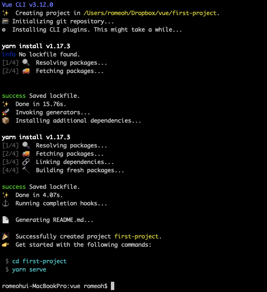 패키지 메니저를 yarn으로 선택하고 second-project를 생성합니다.
