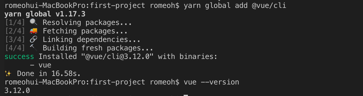 $ yarn global add vue-cli --> 2.X 버전이 설치됨