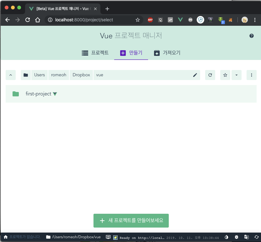 first-project 폴더가 보입니다.(폴더 입니다. vue project 아닙니다.)