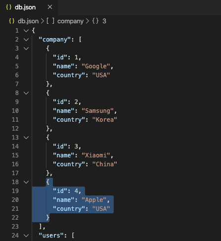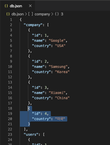 POST 전송하면 db.json 파일에 직접 데이터가 추가되는것을 확인 할 수 있습니다.