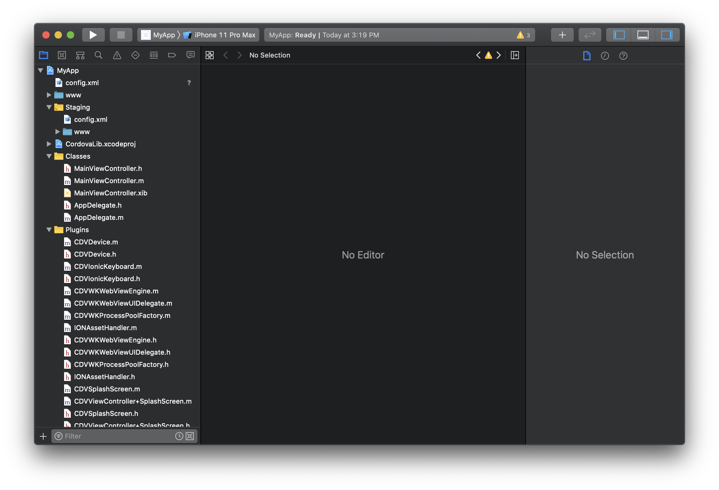 $ open platforms/ios/MyApp.xcworkspace