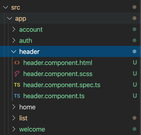 home.page.html 상단의 위 코드를 cut해서 src/app/header/header.component.html 파일에 paste 합니다.