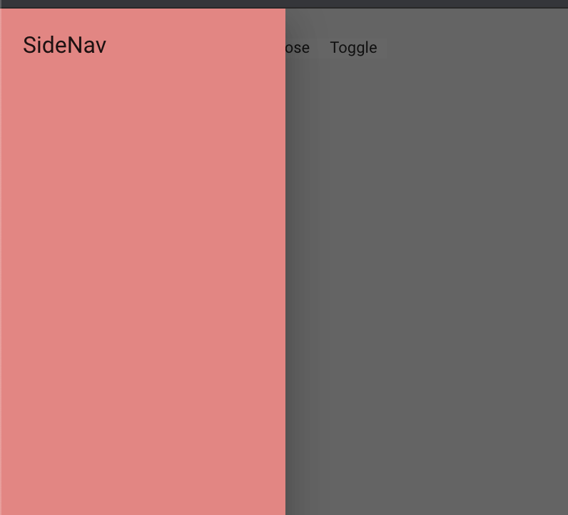 <mat-sidenav #sidenav mode="over" [(opened)]="opened" (opened)="log('opeded')" (closed)="log('closed')">SideNav</mat-sidenav>
