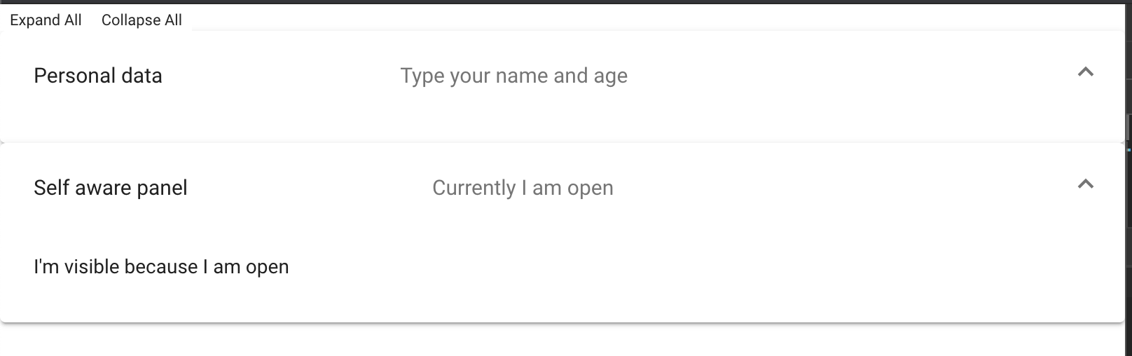 <mat-expansion-panel [expanded]="allExpandState" (opened)="panelOpenState = true" (closed)="panelOpenState = false">