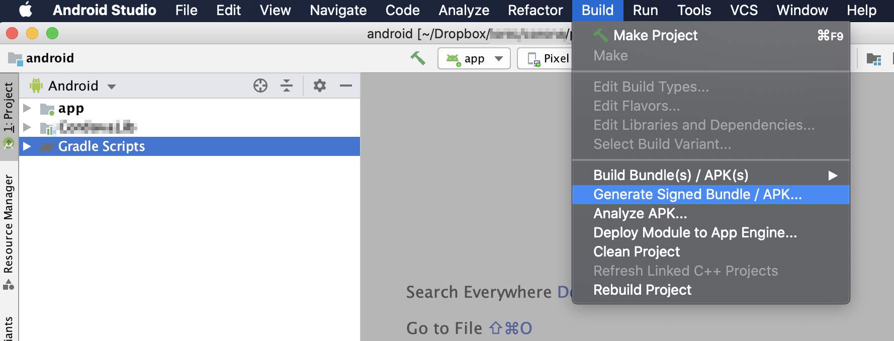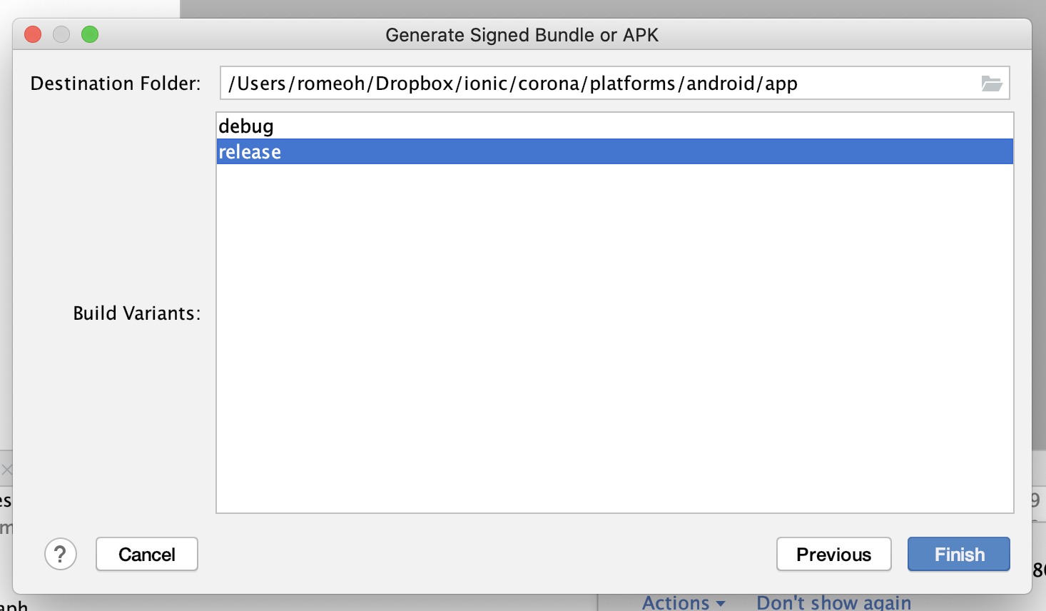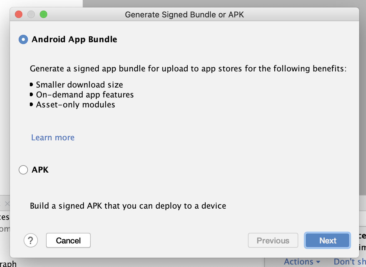 Android App Bundle을 선택하면 app.aab 파일이 생성됩니다.