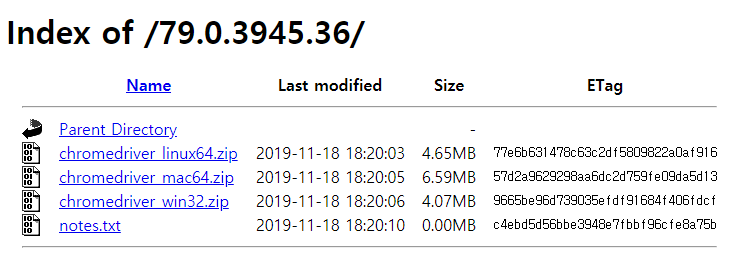 위 사이트에서 79에 대한 chrome driver를 다운로드합니다.
