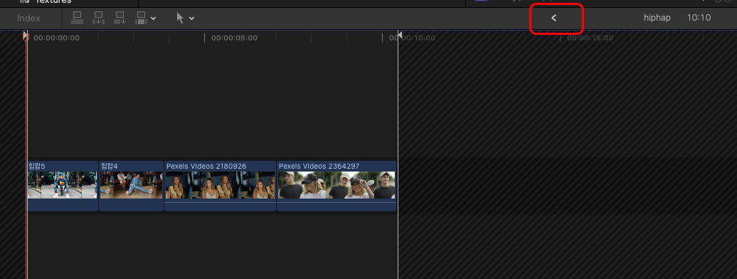 편집이 완료되었으면 상단에 < 버튼 또는 command + [ 를 눌러서 메인프로젝트로 빠져나옵니다.