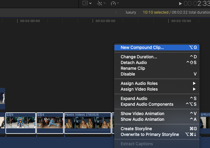 [Final Cut Pro] 컴파운드 클립 설정 / 해제 Compound Clip 본문