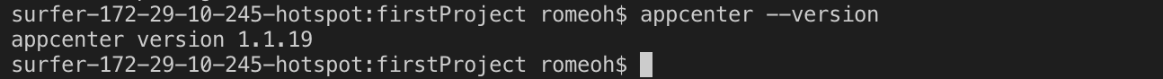 $ appcenter apps create -d FirstProject -o iOS -p React-Native