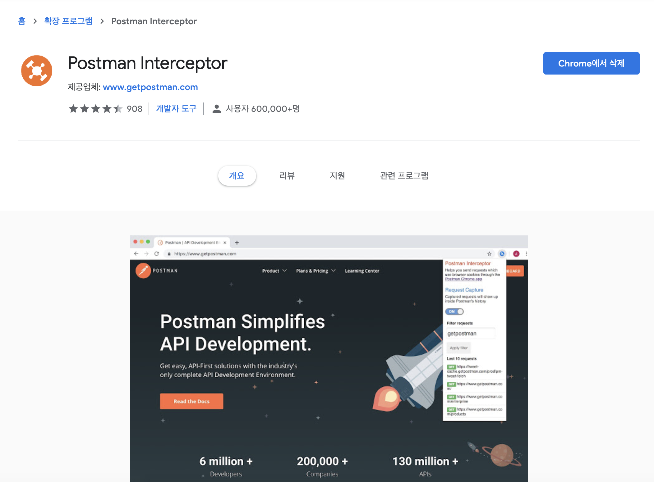 크롬에서 Postman Interceptor 확장 프로그램을 설치합니다