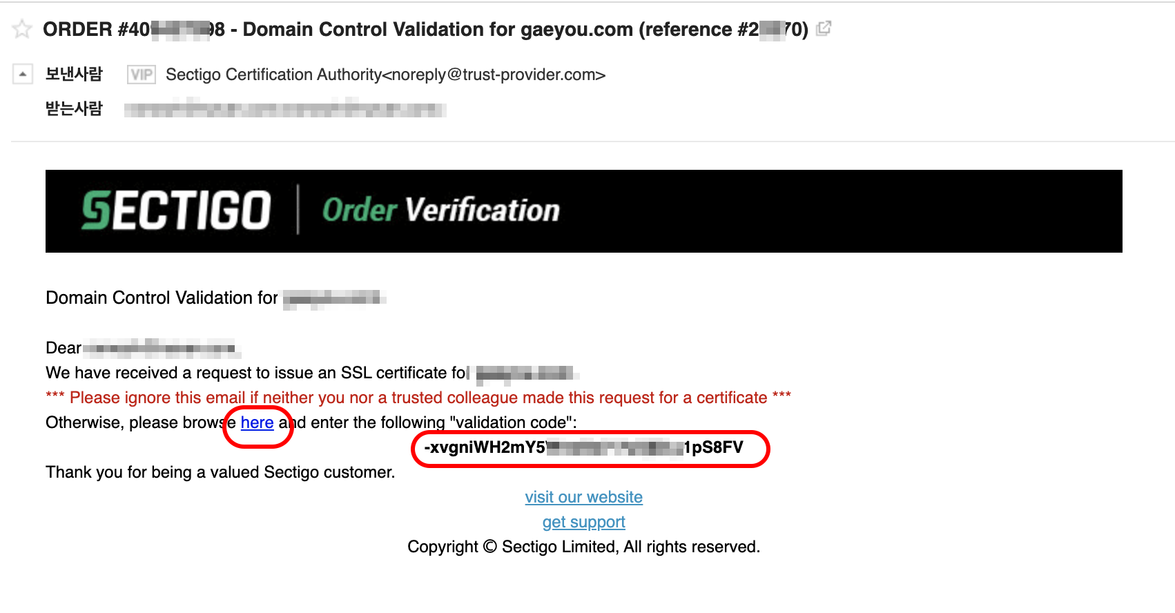 그러면 도메인 소유자 이메일이 표시되고 확인을 누르면 해당 이메일로 인증서가 날아갑니다.