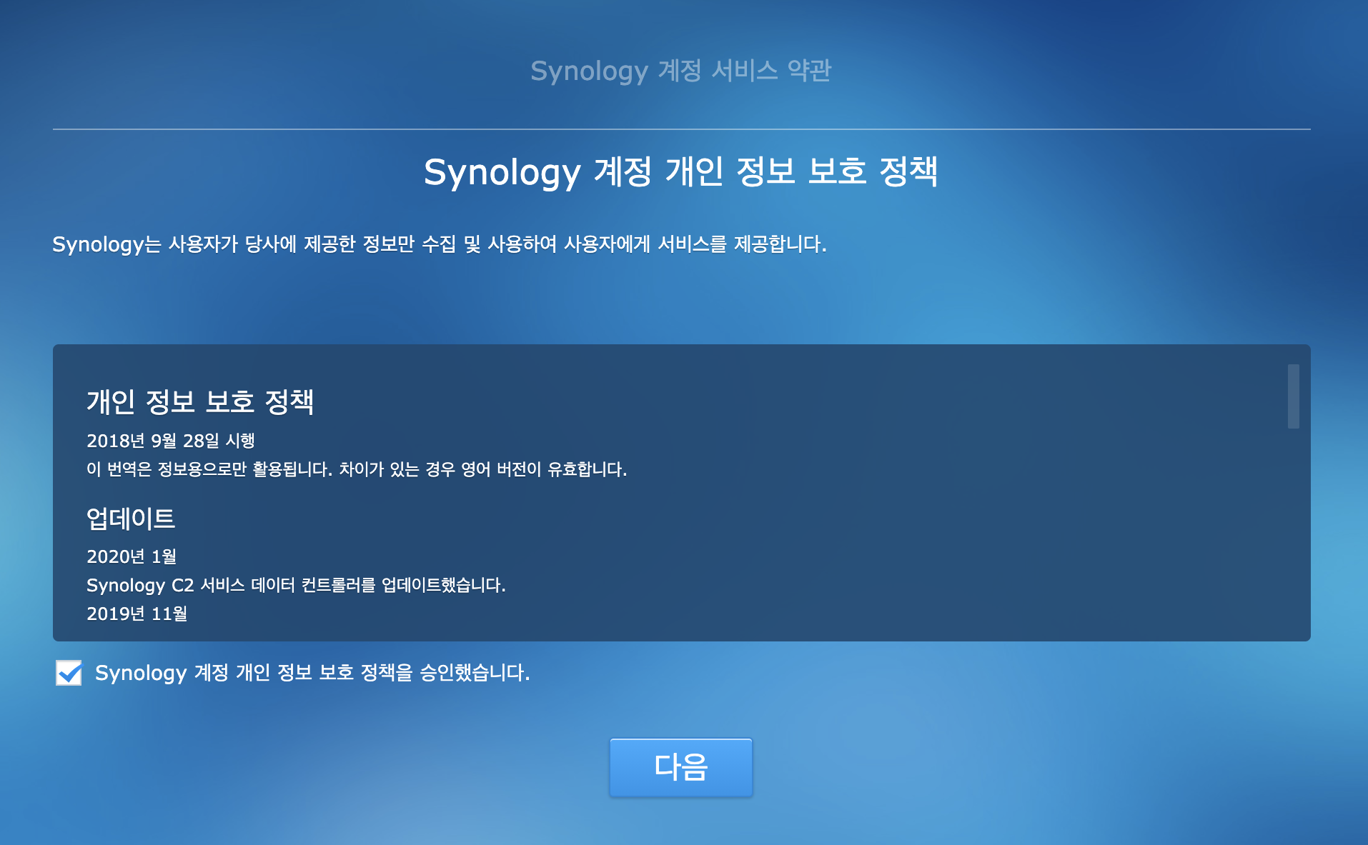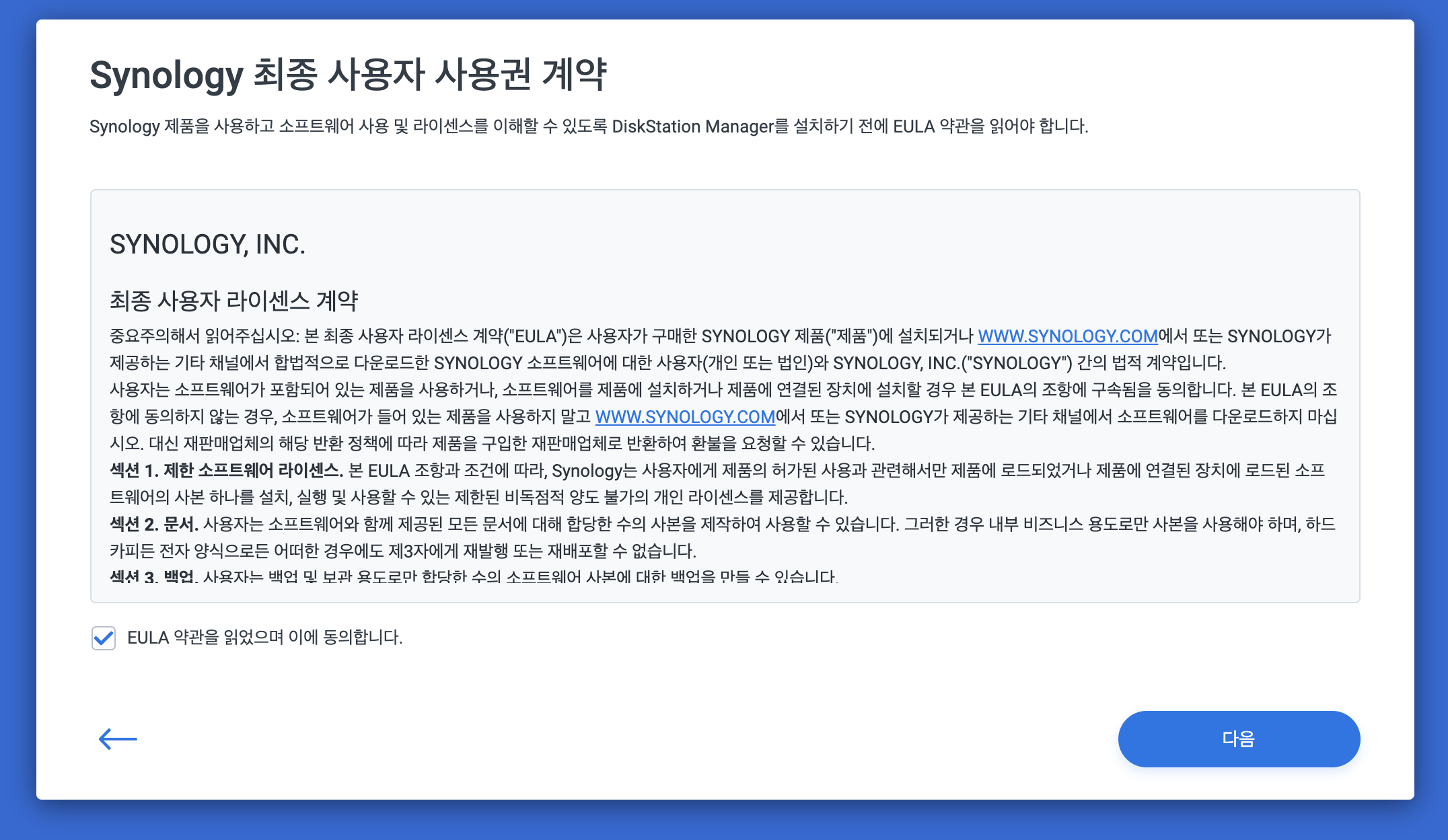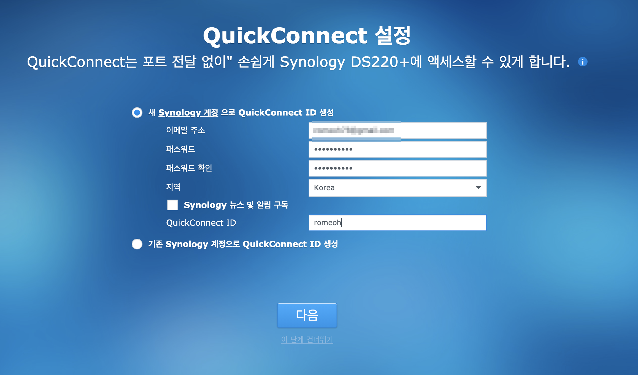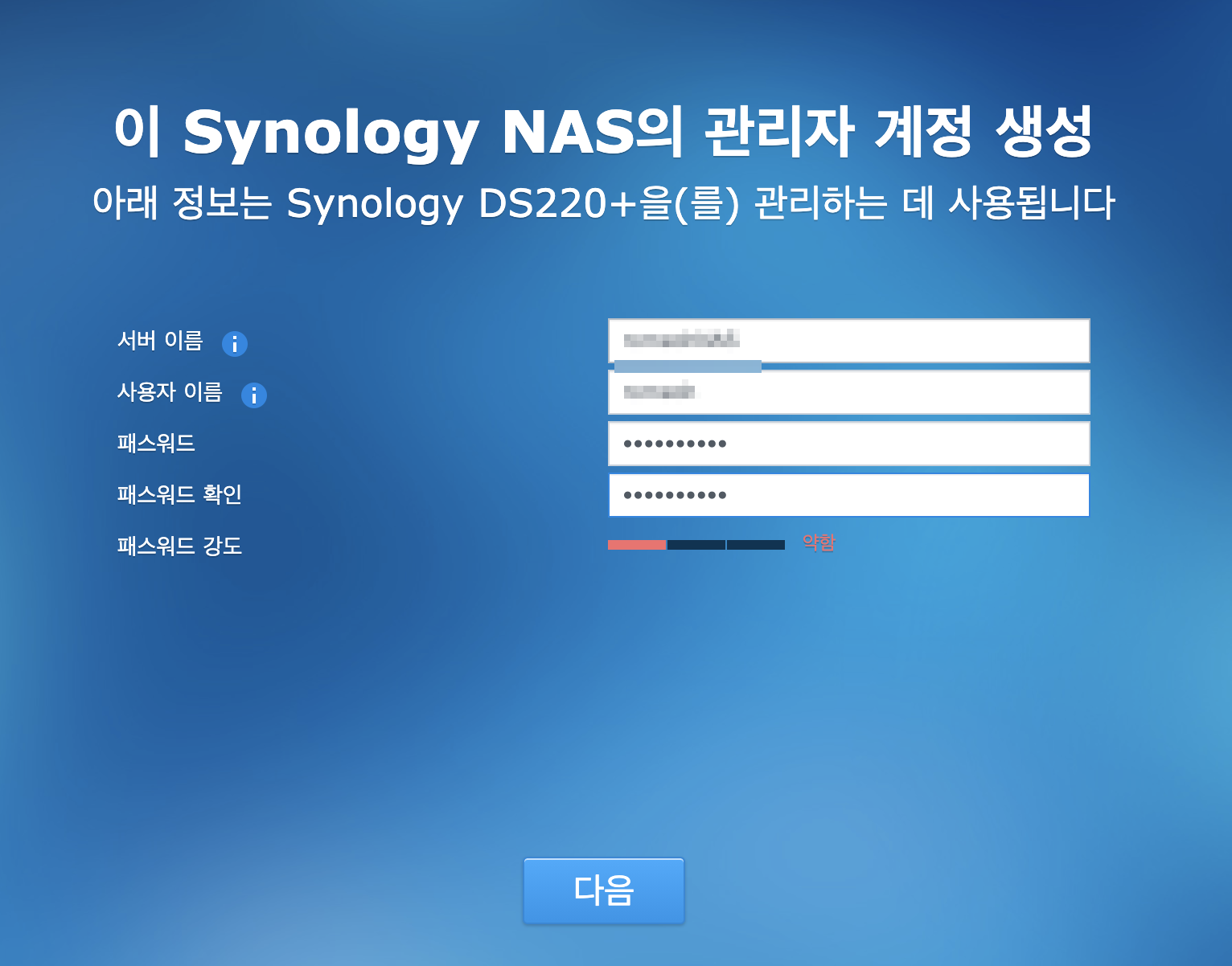 다음을 누르면 NAS 설정 버튼이 나옵니다.