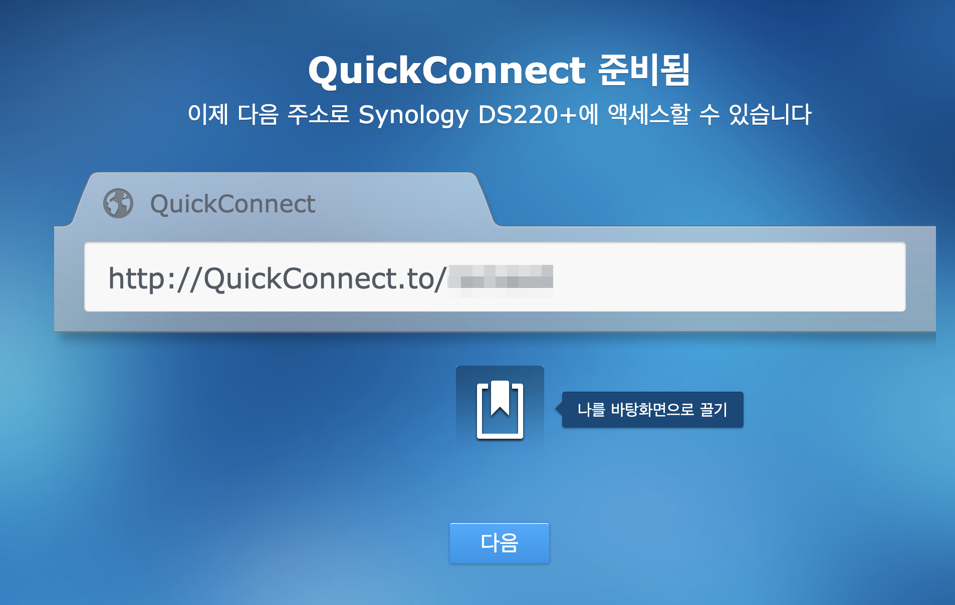 외부에서도 접속 가능한 QuickConnnect URL이 발급됩니다.