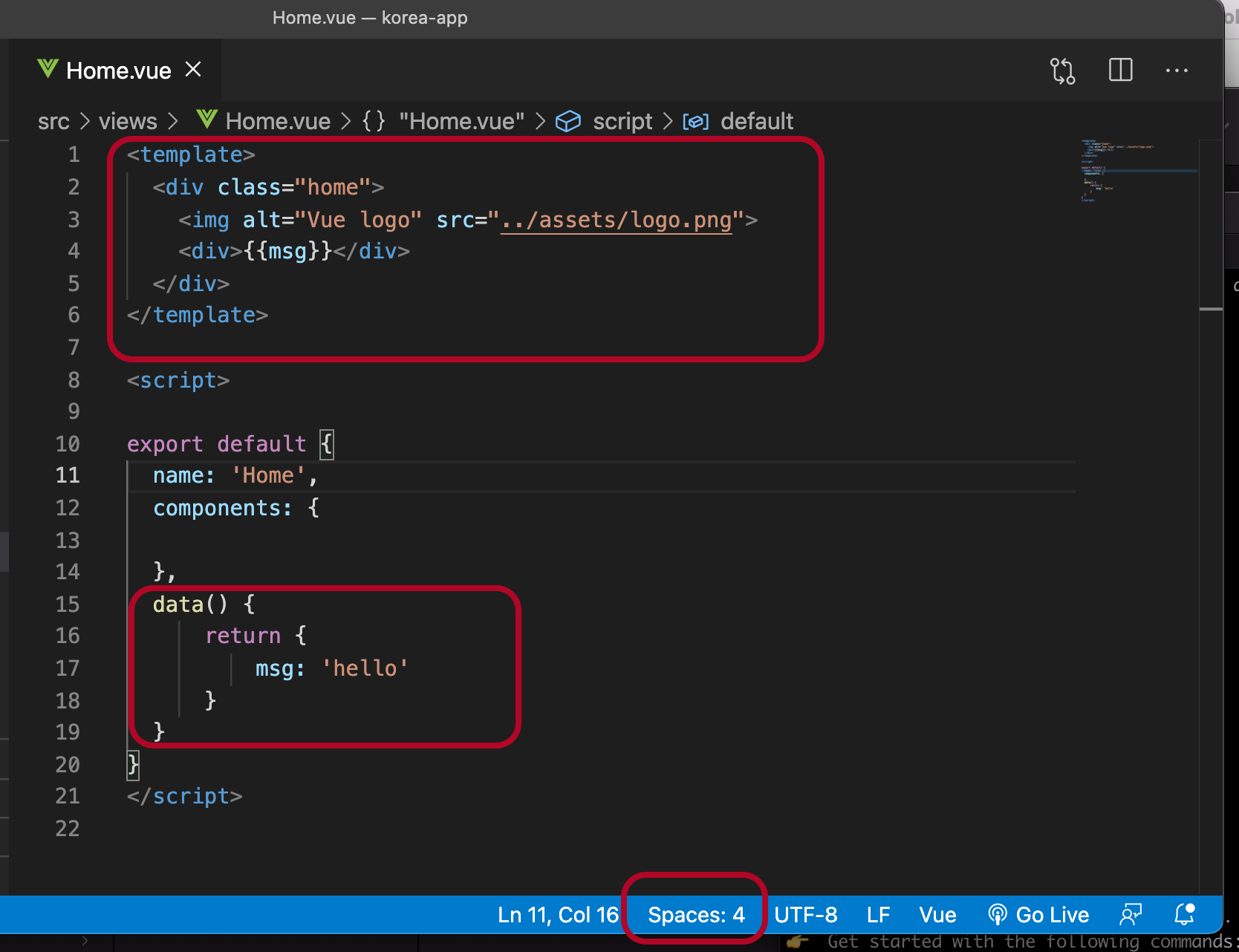 vsCode는 스페이스 4가 되어 있는 경우가 있습니다.