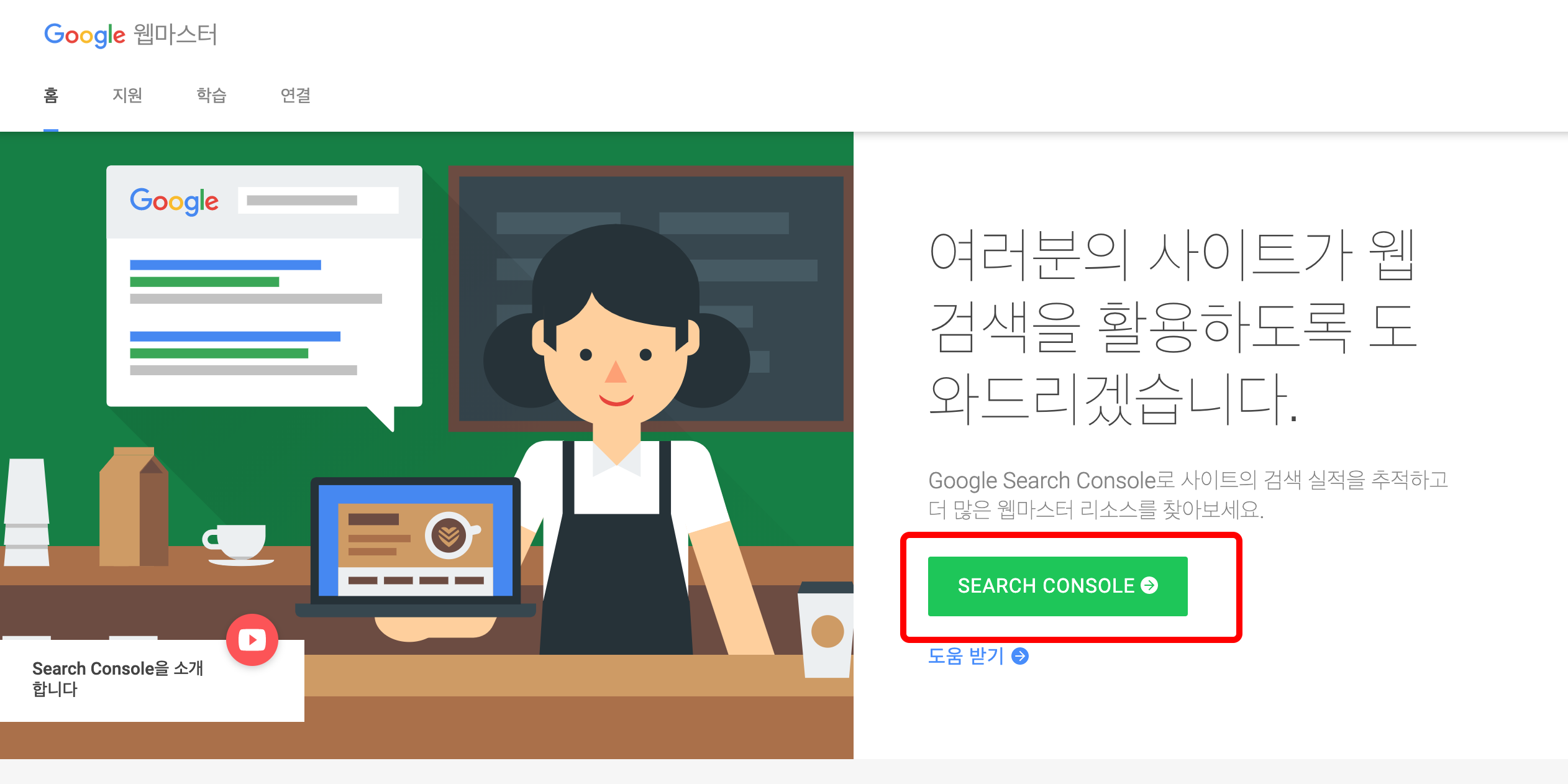 google webmaster 페이지로 이동합니다.