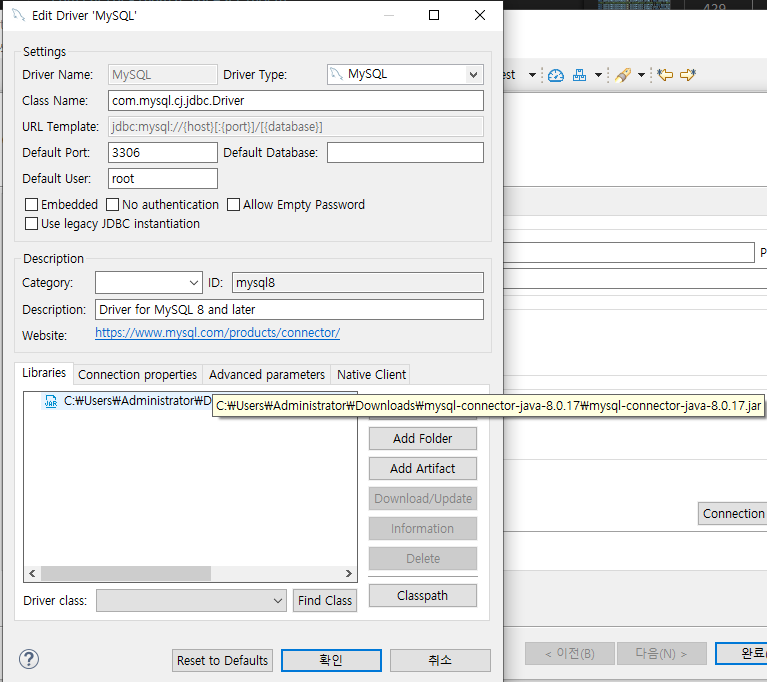 DBeaver에 mysql 드라이버 설치