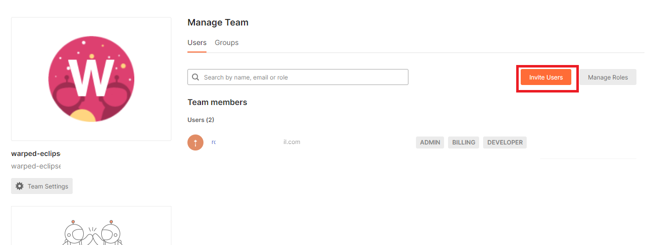 Invite Users를 누릅니다.
