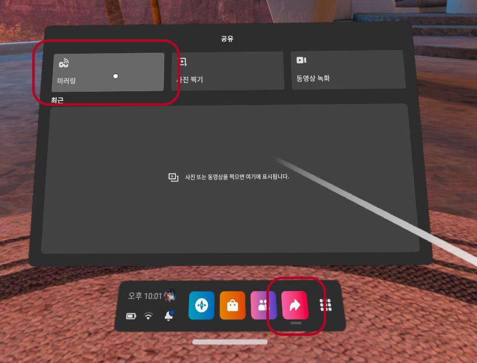 헤드셋에서 공유 > 미러링을 누릅니다.