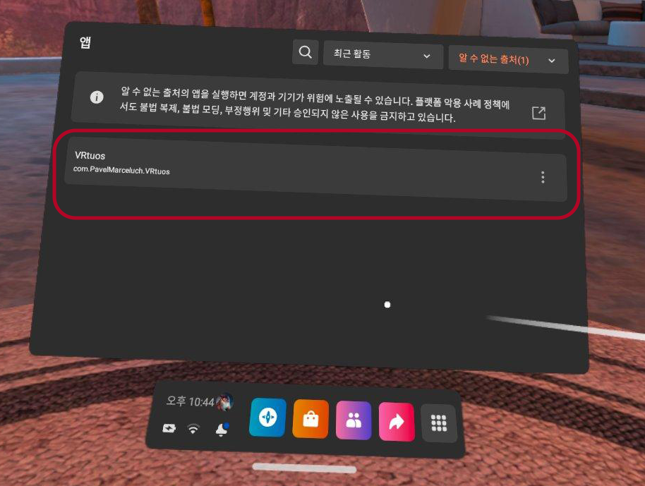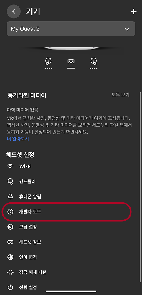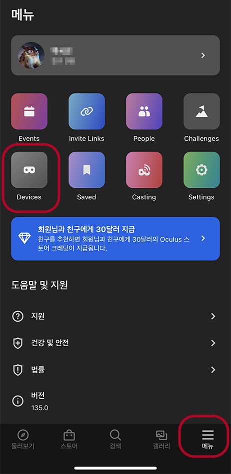 스마트폰에서 오큘러스 앱을 다운로드해서 설치합니다.
