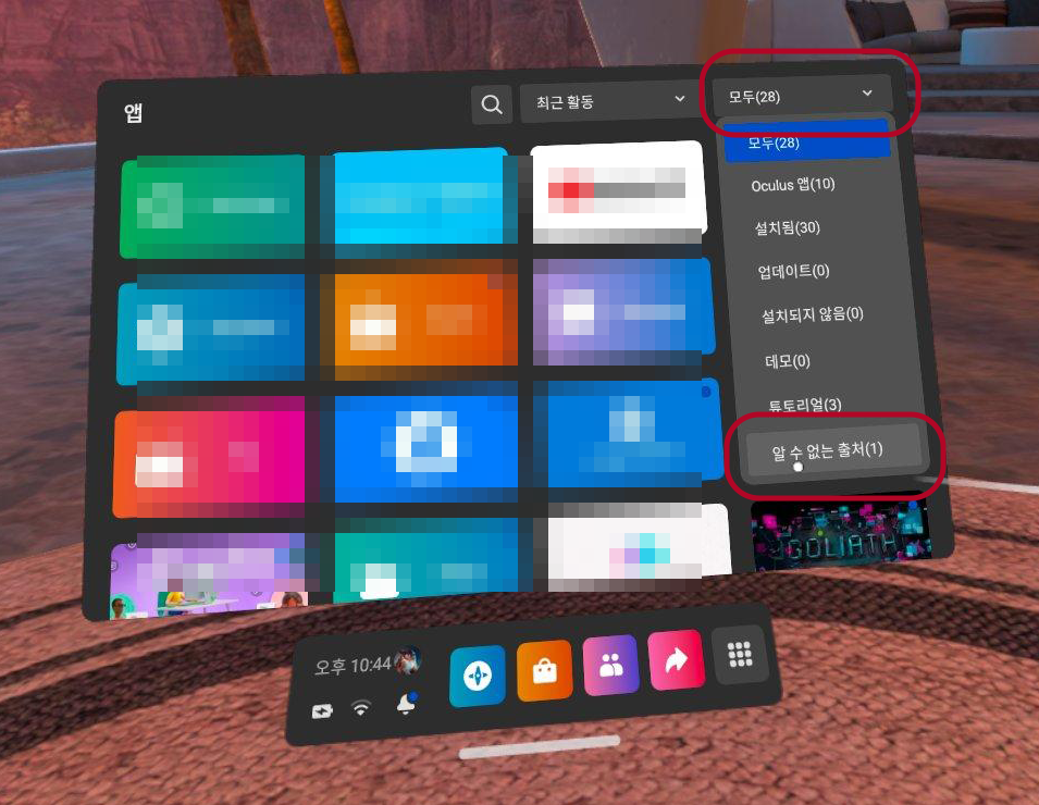 앱에서 모두를 눌러서 알 수 없는 출처를 선택합니다.