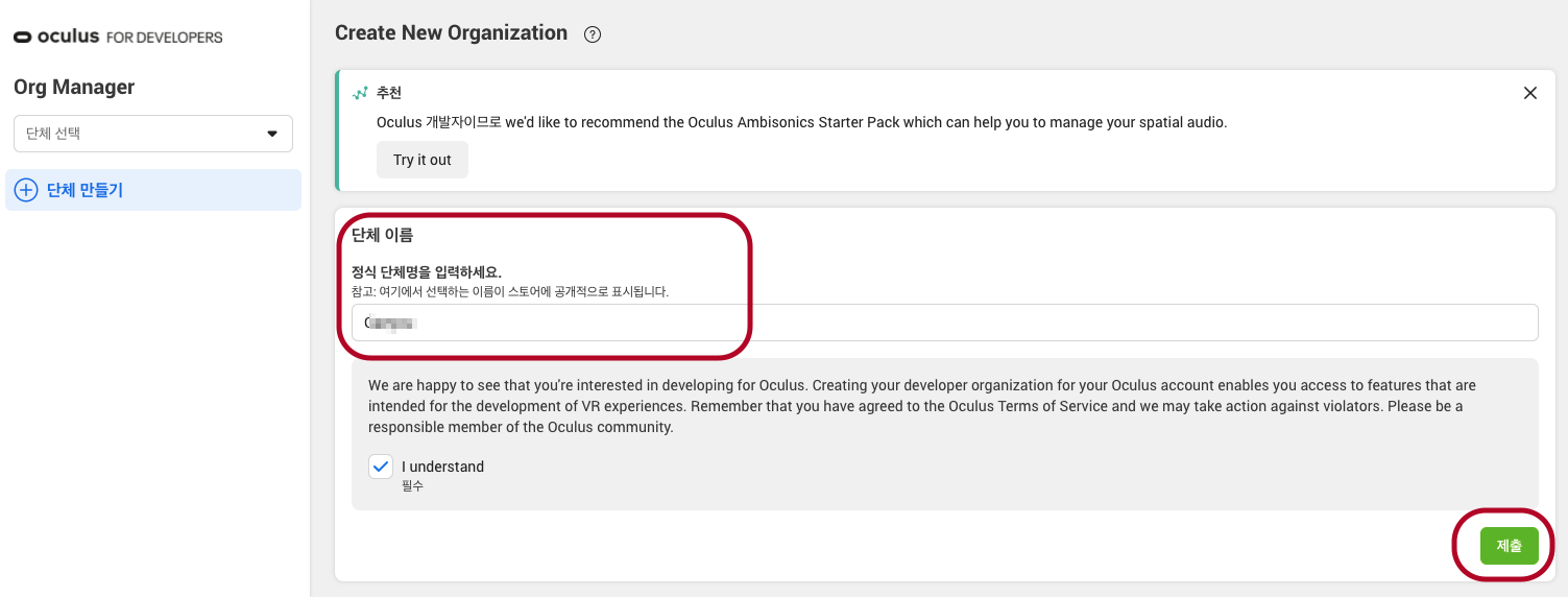 오큘러스 dashboard에서 개발자 등록하기