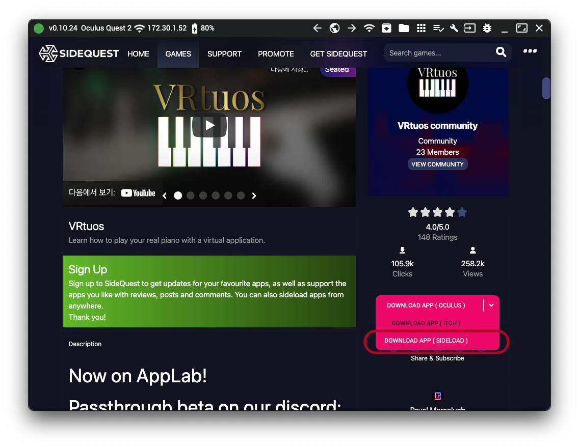 Download App (Sideload)를 눌러 앱을 설치합니다.