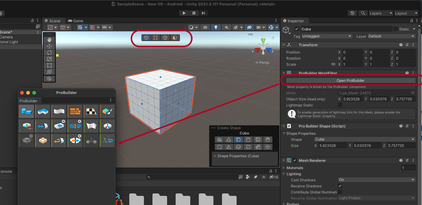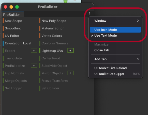 Open ProBuilder 버튼을 눌러 다시 ProBuilder 창을 열 수 있습니다.