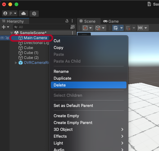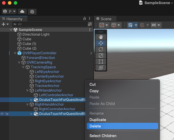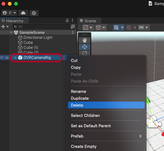 이번에는 OVRCameraRig를 삭제합니다.