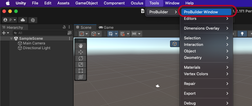 Tools > ProBuilder > ProBuilder Window를 엽니다.