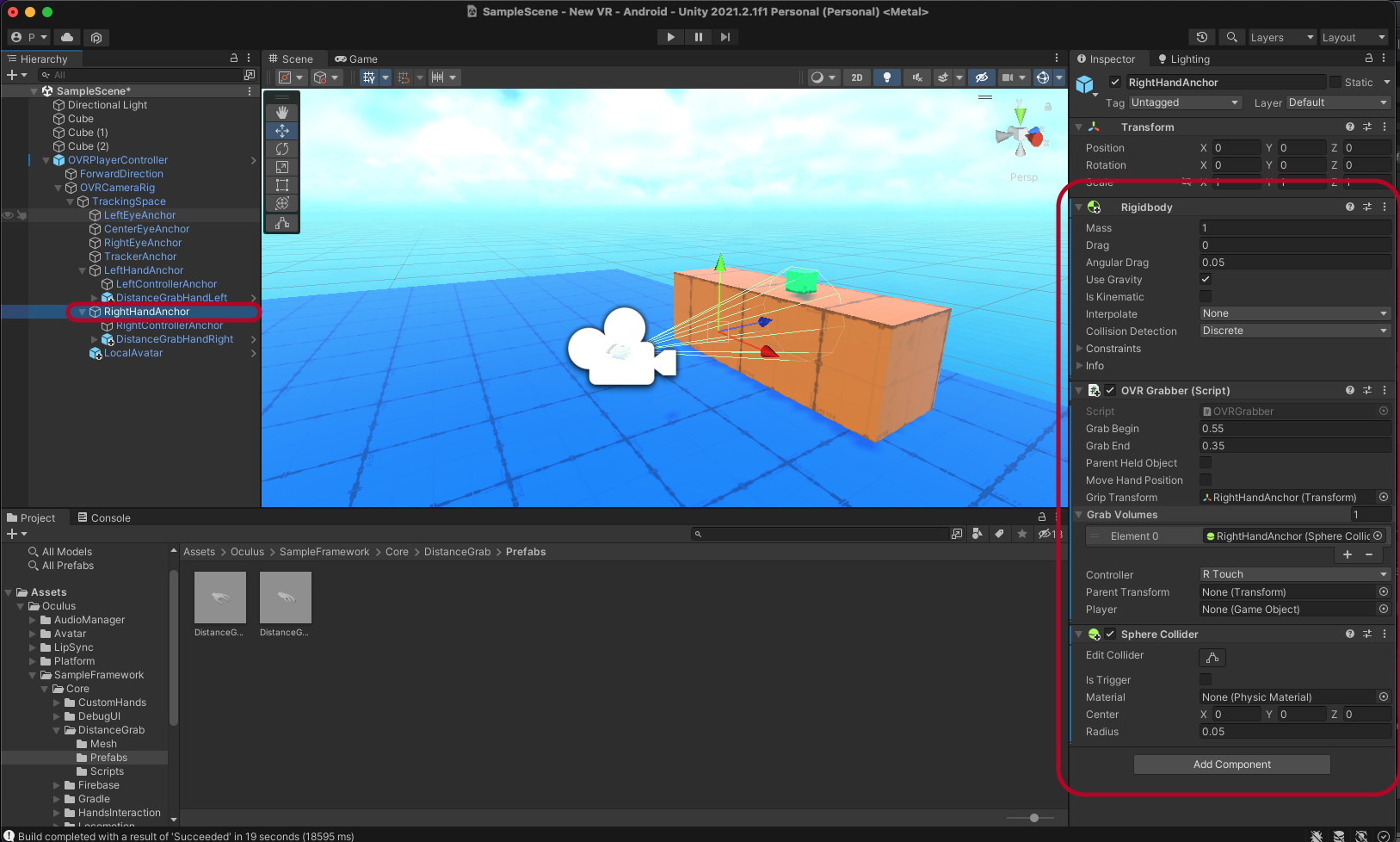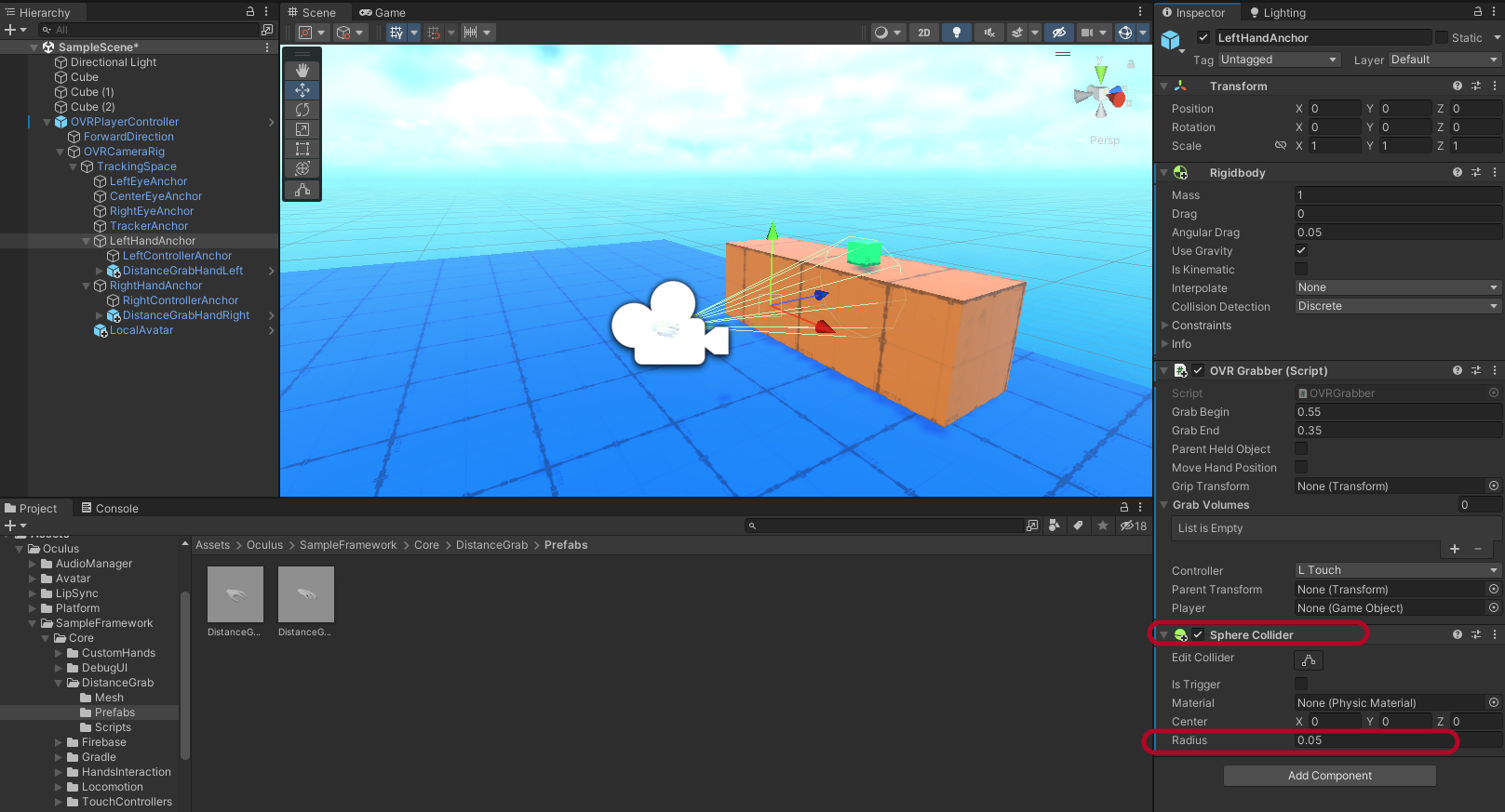Assets > Oculus > SampleFramework > Core > DistanceGrab > Prefabs에서
