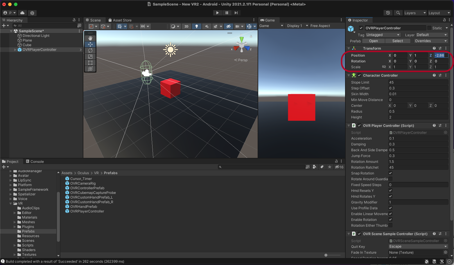 OVRPlayerController를 선택하고 적당히 위치를 조정합니다.