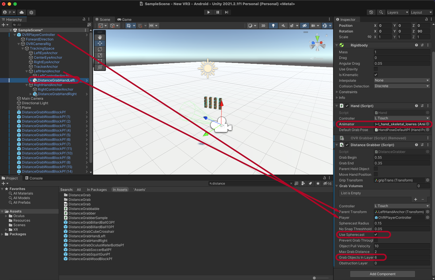 이제 DistanceGrabHandLeft를 그림처럼 설정합니다.
