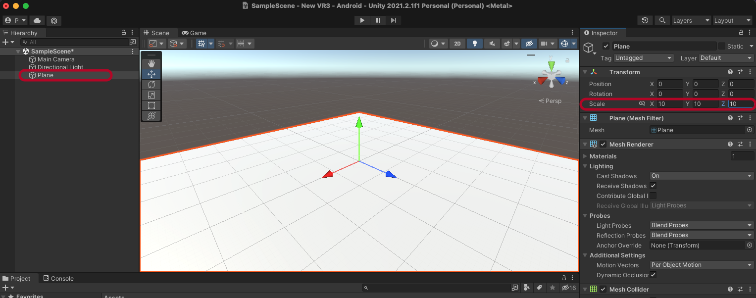 Plane을 생성해서 Transform을 적당히 조정합니다.