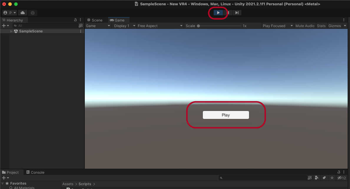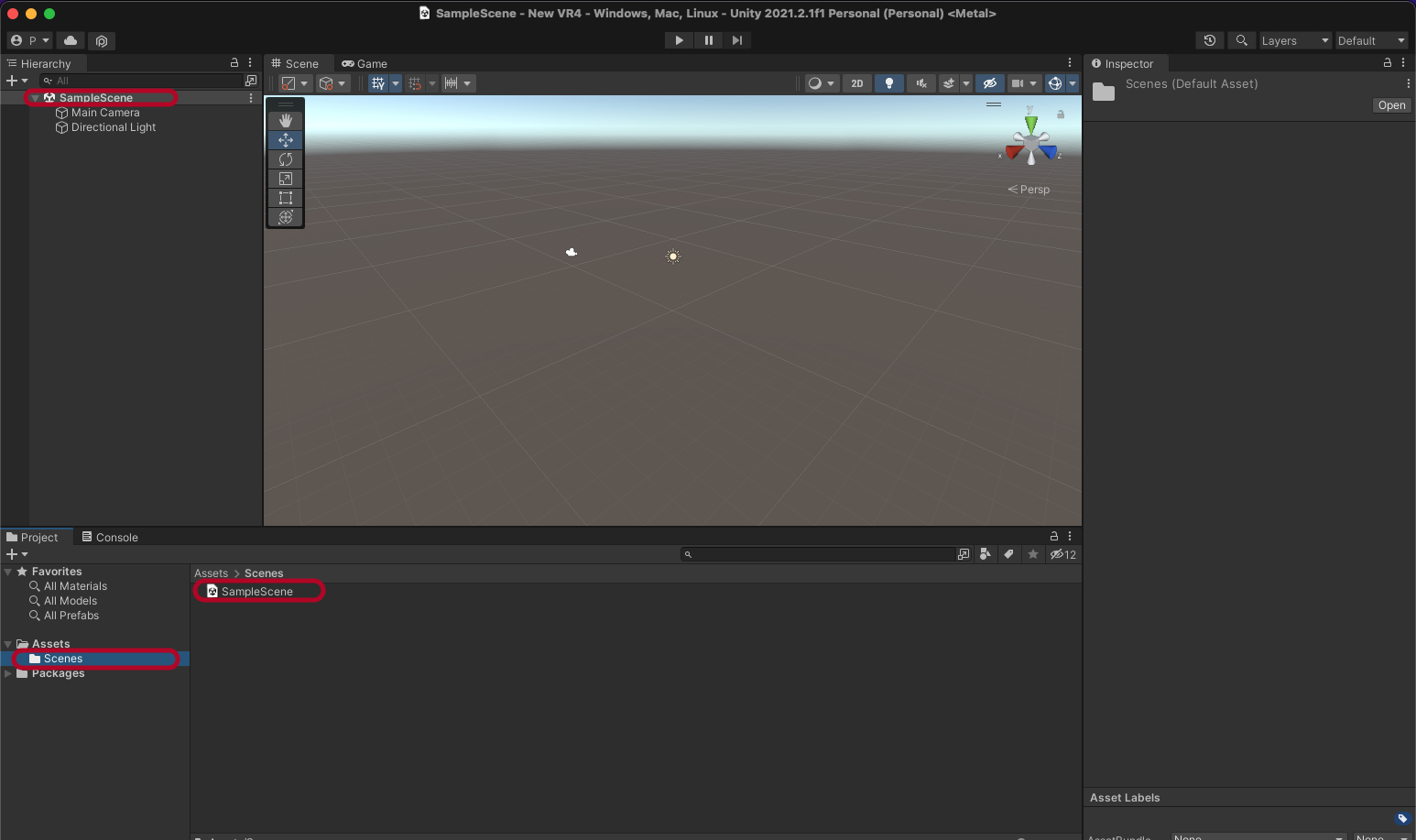 프로젝트를 새로 생성하면 SampleScene이 생성되어 있습니다.