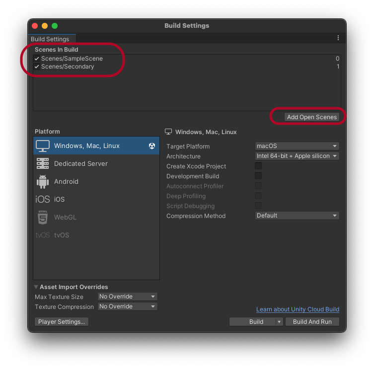 File > Build Settings에서 Add Open Scenes를 눌러서