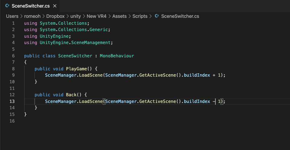 SceneSwitcher 스크립트 파일을 생성합니다.
