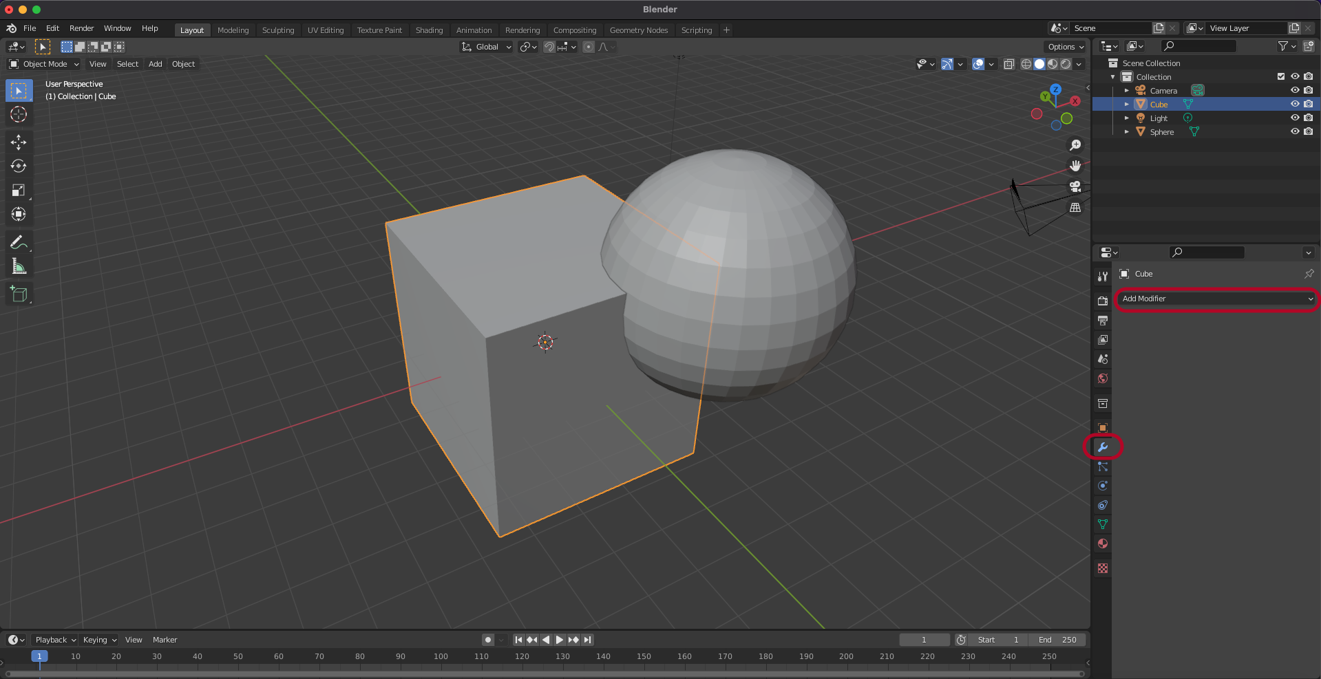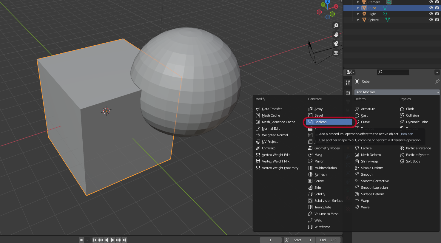 기준이 되는 오브젝트를 선택하고 Modifier Properties > Add Modifier를 선택합니다.