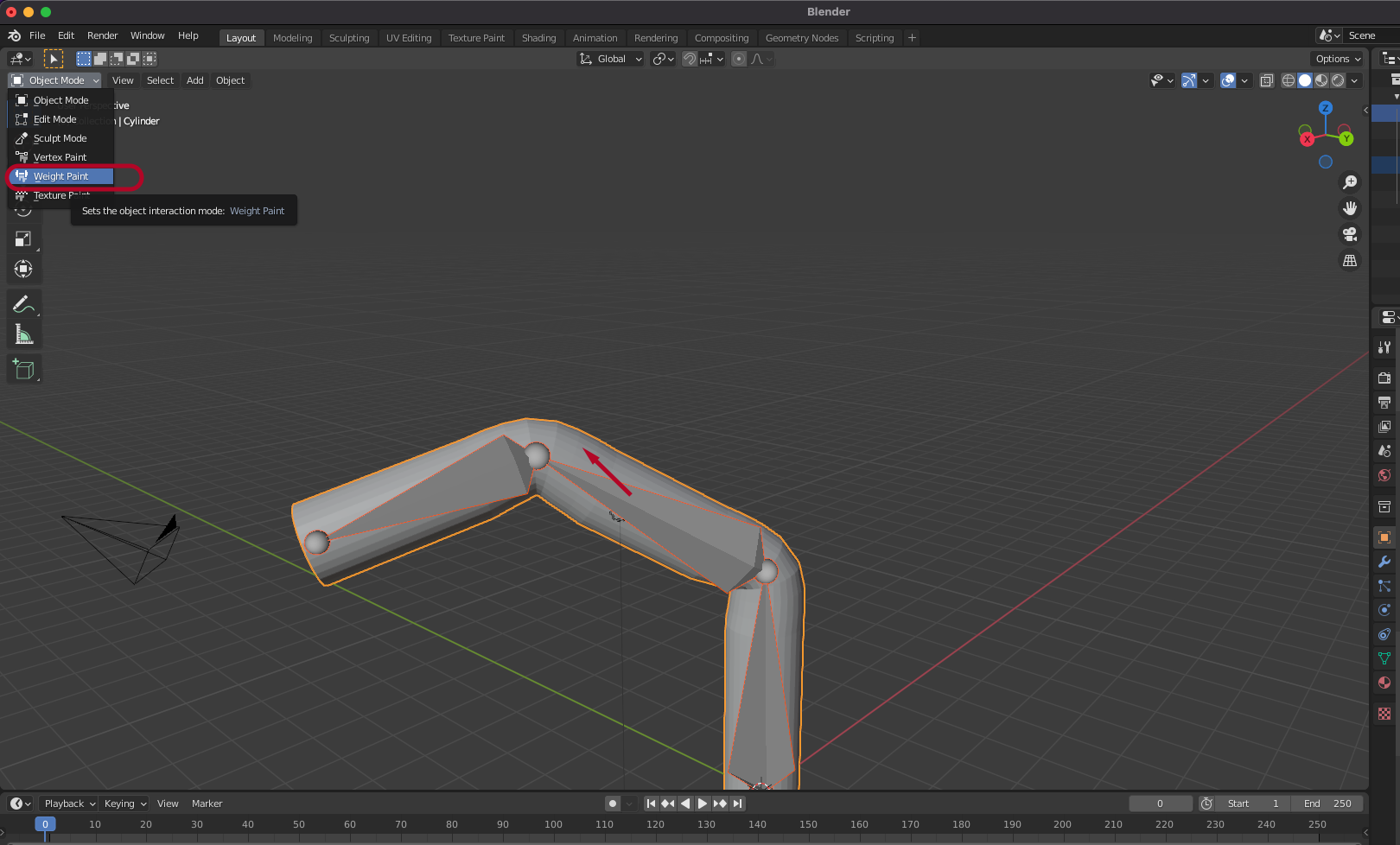 Cylinder를 선택하고 Shift키를 누르고 뼈대를 함께 선택합니다.